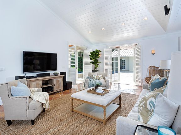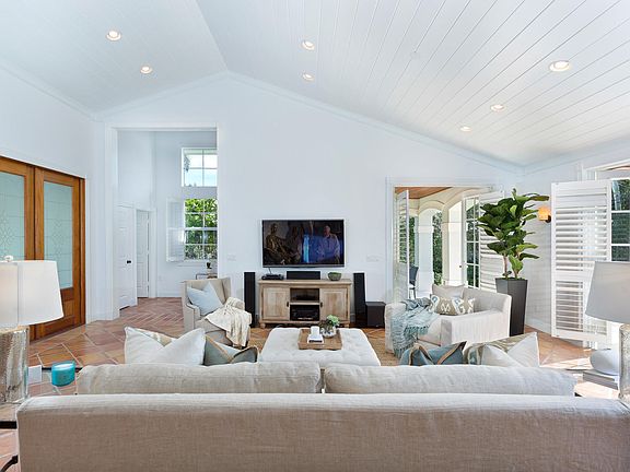 Attuned to indoor/outdoor living, this casually elegant Bermuda-inspired compound features a newly expanded main house and a separate guest cottage across the pool courtyard in this palm-studded oasis just a couple blocks from the beach, near Atlantic Avenue. Perfect for entertaining, the versatile layout features a bright, spacious living room with lofty vaulted ceiling. Luxurious master suites are on both levels. See More for Disclaimer