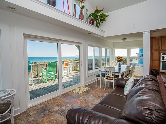 Looking to enlarge your spacial surroundings? Could a daily view of the sky meeting the horizon over the ocean inspire healthy living, productive work and more outdoor enjoyment? This newly renovated ocean front home provides an enormous amount of open space within and without. What makes this property singularly unique is the option for full time residence on the lower level while earning vacation rental income on the upper levels. In just the 1st year of renting out the top unit and focus on reducing overall expenses including insurance and monthly utilities the sellers have set up a situation for the next homeowner to have the luxury of full time beach life paid for by vacation rental income. They have done the math and we are glad to share it with you. Recent exterior improvements such as Hardie plank siding, hurricane impact doors and windows and new Bronze Fortified Roof provide great storm resilience and lowered maintenance costs. Practical financial considerations covered, take a look at the pictures. The new custom interior finishings on the lower level are stylish and the flexibility of the new enlarged floorpan offer many alternatives for private work areas without infringing on living areas. It is obvious to understand the popularity of the upper level unit as a vacation retreat with the expanse of windows on the ocean front wrapping around to the sides. The panoramic views are glorious and the large open space shared between the living room, kitchen and dining area highlight the visual aspects of living large within the beauty of nature. A great opportunity is available for use of this property as a hybrid residence and vacation rental as well as full rental lower level and top. With over 4400 SF, one can enjoy as a single family home with interior connecting staircase for one family and/or multi generational living. The choices are yours.