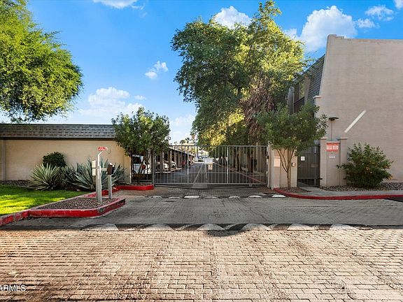 Incredible value with ALL utilities included water, electric, trash, recycling, pool access, community maintenance, and covered parking making this one of Midtown's best-priced, fully updated rentals. Discover sleek, modern living in this newly renovated top-floor gem featuring a moody, on-trend color palette and abundant natural light throughout. This quiet, private unit sits in the center of the community away from Osborn Road with serene courtyard and mature tree views, plus a spacious primary suite with mountain glimpses. Enjoy upgraded finishes including new stainless steel appliances, granite countertops, a large granite electric fireplace with built-in heater, designer lighting, 9 dimmable LED recessed lights, a large LED vanity mirror, premium Sherwin-Williams Infinity Gold Label paint, custom closets, and front-loading washer/dryer. Thoughtfully designed with a large window and two Juliet balconies for true indoor/outdoor living. Gated community offers keypad entry, security camera, a pool with grill area, and an unbeatable location across from the Phoenix Country Club and steps to all the best coffee, dining, groceries, and more. Only minutes to Downtown and Uptown Phoenix and Skyharbor Airport - you are truly in the heart of it all. Come make this midtown masterpiece your new home!