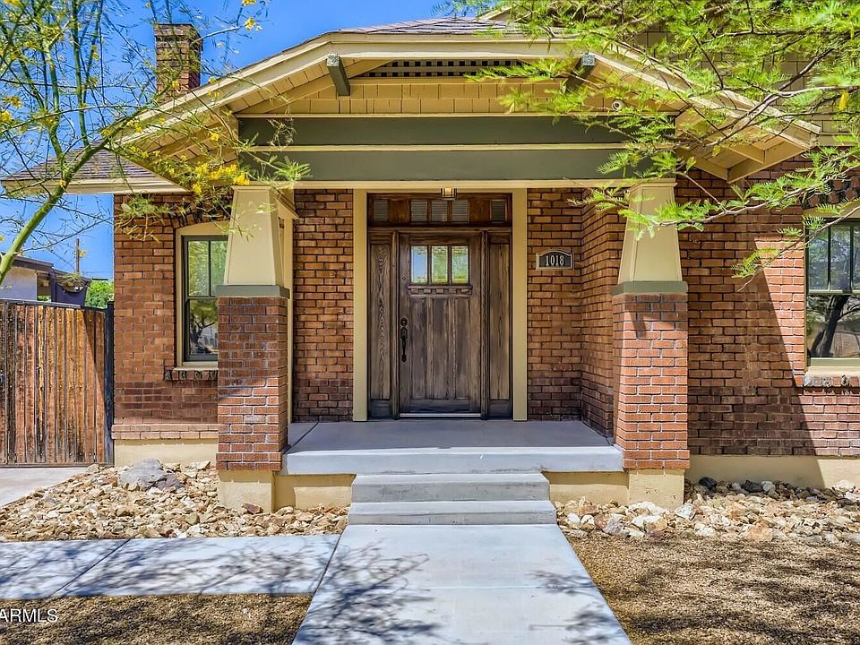This 1926 Craftsman has had all its major systems updated while keeping its character in place. Don't miss the original wood floors and stained glass front door! It has three large bedrooms and good storage in each. The living room has the original wood built-ins that are charming and functional. New carpet in bedrooms. The home sits on a 1/4 acre lot with only native plants to help keep your water usage low. The 192 sf studio in the backyard is climate controlled with 2021 AC unit. Driveway has an RV gate and a 240V outlet. Dual pane windows, ceiling fans & blown insulation in the attic help keep your bills lower. This property is close to Roosevelt Row, access to I-10, incredible local dining and all the sporting and cultural events in Downtown Phoenix. Come see for yourself!