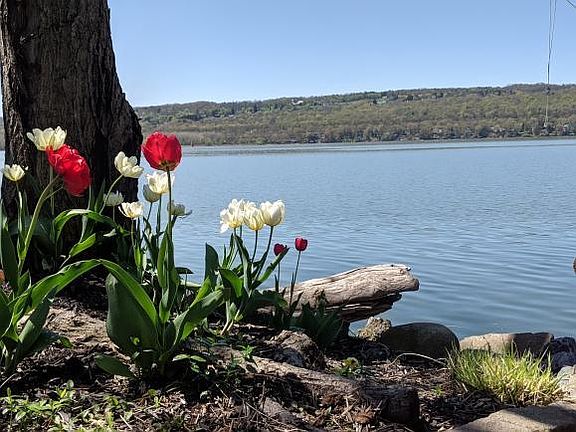 SUNSET SIDE! This location ON THE LAKE is conveniently located to everything! 5 minutes to Cornell and only 1.5 miles to downtown Ithaca. This duplex sits on .16 acres with a large side yard, an all season sunporch and an extra large dock to dock 2 boats if you desire. Upstairs has 2 beds, 1 bath with a great air BnB Business while the downstairs is BRAND NEW! Large kitchen with black stainless steel appliance and quartz countertops. The master en-suite offers stunning lake views no matter where you position your bed. 2 additional bedrooms and a full bathroom with custom marble tile downstairs. The all season sunroom has spray foam insulation so the lake views can be enjoyed all year long. 5 parking spots make entertaining easy. After a hot summer day on the lake enjoy the air-conditioner inside while you grab a new bottle from the wine frig! There has not been a detail left out to make this lake life, your best life!