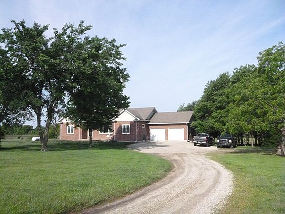 This rural property in Coffey County has something for everyone: Beautiful brick home (2'x6" construction and 9' ceilings) with a large back deck (504 Sq Ft) and walkout basement that looks out over the stocked, spring fed pond, 80 acres m/l of country bliss (pasture, trees, hay, crop ground), less than 2 miles to pavement, ~8 miles to Burlington, Kansas The amenities on the inside of this home are just as impressive: Large 'eat-in' country kitchen with vaulted ceiling and 'hi-lo' island, relaxing family room, large master suite with a large walk-in closet complete with built it cabinets and organization, large master bath with Jacuzzi tub and shower, nice laundry room with storage, 2 more very nice bedrooms and a spacious bath. Venturing downstairs to the basement, you will find a large, efficient wood stove that is ducted into the heating system that is an option to using the propane furnace or just as a nice back drop in the living room that is ready to be finished. The basement is wired and studded up and a bathroom is sheet rocked, so you can finish out to suit your needs.