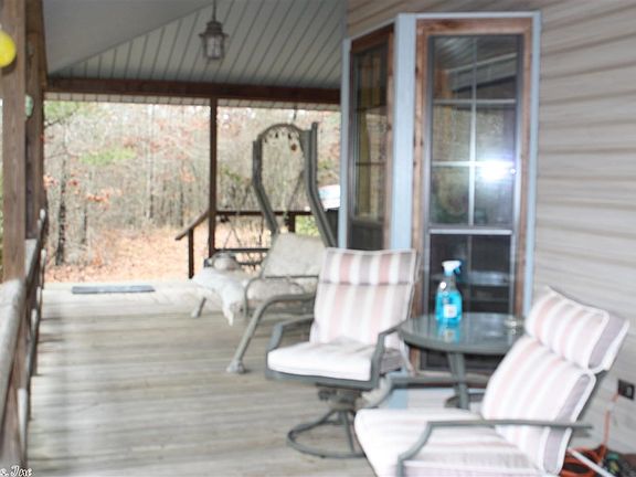 Rustic, unique and beautiful. The tongue and groove wood was put up on the walls in patterns that are fantastic The concrete tile fl is awesome.and the bay; windows. All of the walls are 2 x 6 const. The mas bdrm, sitting room and mas bath are on the main fl as is a 2nd bath. Upstairs you will find 3 more bedrooms and a bathroom. The kit has rustic wood cabinets and appl. The wrap around deck to relax and enjoy the wd life--deer and turkeys. It is energy efficient with the extra insul, 2 AH&A unit