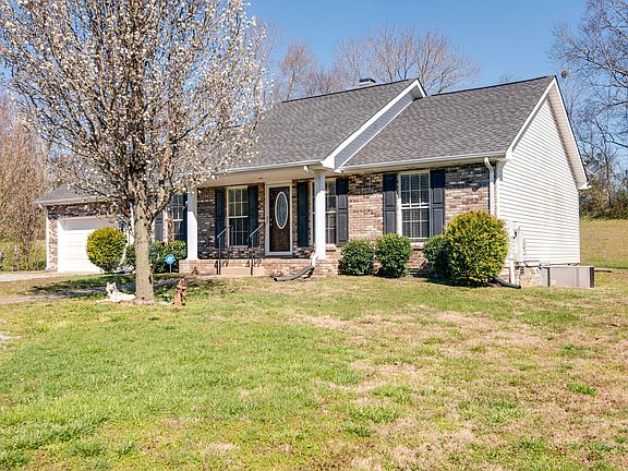Nice single level ranch home on large lot with no HOA. Long driveway with plenty of parking and 2 car garage. Laminate & tile floors, carpet in bedrooms - ceiling fans through out. Refrigerator and W/D to remain. Private backyard with patio no homes behind. Conveniently located - minutes to shopping & I 24 easy commute to Nashville.