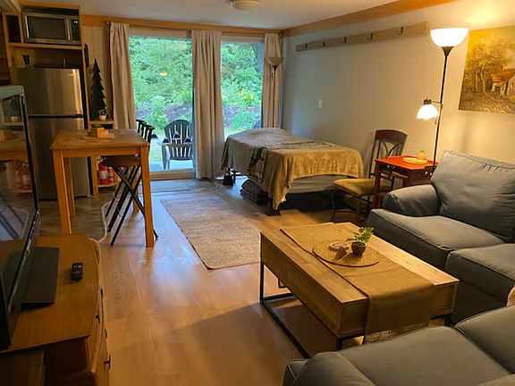Ground floor unit with walk out patio, on the Carrabassett River, 2 minute walk to Tufulio's Restaurant, 10 minutes south of Sugarloaf ski area, access to mountain biking, hiking trails, and all outdoor recreation. Common Laundry, and ski tuning room. **No pets allowed Renter responsible for Internet, all other utilities included no pets Seasonal, or year-round lease available