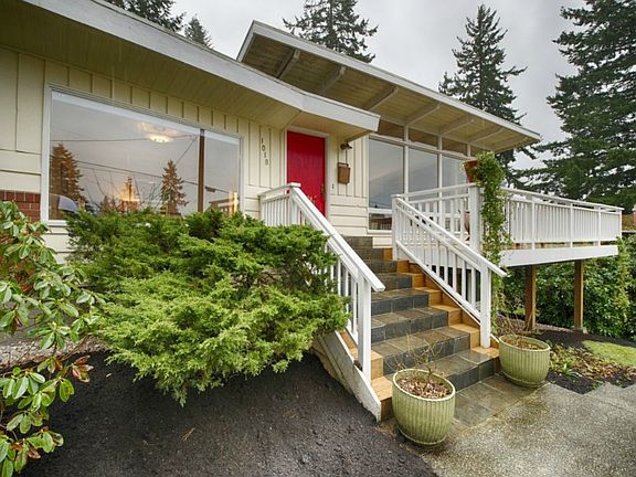 Modern with a View! Light filled Edmonds Bowl Mid Century Modern. Enjoy the endless Sky and Sunsets through the large windows and from your spacious deck. Open flowing floor plan, wood floors and extra high ceilings and big window on the lower level. Beautifully landscaped yard with a fully fenced back yard on a triple lot. This neighborhood is SO quiet and the street backs up on to Yost park: Just 3 homes to the trail to Yost Park Pool, Playground and Kids Nature Wonderland. Relax and Enjoy!