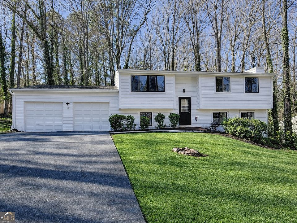Welcome to 1018 Martin Rd, a beautifully renovated split-level home in Stone Mountain that perfectly blends modern style with functional living. This residence features a bright, open-concept main floor highlighted by a stunning kitchen with crisp white cabinetry, elegant quartz countertops, and a full suite of stainless steel appliances. The seamless flow into the living area, accented by contemporary lighting and new flooring, creates an ideal space for entertaining. The home offers a thoughtful distribution of space with 3 spacious bedrooms and 2 full bathrooms on the upper level. The finished basement adds significant value, providing a 2 private lower-level bedroom-perfect for guests or a home office-alongside a cozy family room featuring a classic white-washed stone fireplace. Large windows throughout the home invite an abundance of natural light, while the two-car garage and expansive driveway ensure plenty of parking. Situated on a serene, wooded lot, this move-in-ready gem offers both privacy and modern comfort in a prime location.