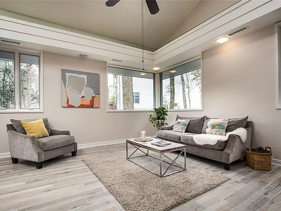 Get the feel of being in the mountains in this contemporary private retreat in the middle of the city - just a short drive to Emory, CDC, Toco Hills and City of Decatur. This home was completely renovated in 2013 including new windows, systems, siding, sewer line and roof. The unique floor plan offers 2 bedrooms 1.5 baths upstairs, and 2 bedrooms 1.5 baths downstairs, plus loft space perfect for home office. The renovated kitchen features new cabinetry beautiful granite counters, Bosch stainless appliances. Vaulted ceilings, lots of natural light, new floors and more!