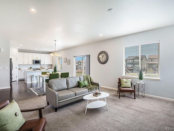 Looking for a Move-In Ready home that backs to a greenbelt AND gives you the extra space you need to grow with a FINISHED walk out basement? Look no further! This open concept modern home features an eat-in kitchen with 42" white cabinets, quartz countertops, main level hardwood floors and office. Upstairs, you have 3 bedrooms, 2 full bathrooms and a large laundry room conveniently co located PLUS a loft ready for your Bonus Area wants/needs. You'll love the primary bedroom with en-suite bathroom and large walk-in closet complete with custom built-ins. If you still need more, the newly finished walk-out basement is the perfect space for multigenerational or room mate living. With a separate entrance, small kitchenette, full bathroom and pocket office space, this finished space could make a GREAT studio apartment or mother in law suite. The three-car tandem garage with ample storage space, west facing driveway and low maintenance yard are just the cherries on the top of all of this. This desirable neighborhood of Terrain in Castle Rock is close to parks, schools, shopping, and offers quick access to highways for easy commuting from Denver to Colorado Springs and everything in between.
