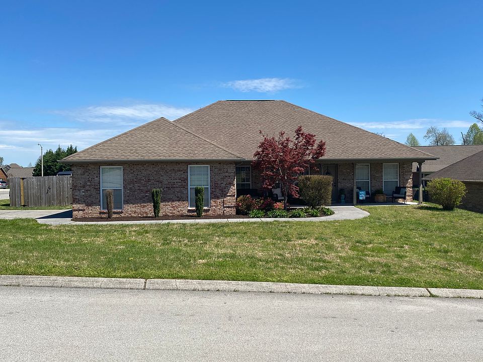 All brick ranch sty le home with split bedrooms, 2 car garage, covered front porch and fenced back yard. This corner location allows for a side entry garage access and ample parking for guest Nicely landscaped lot and spacious interior rooms lends it's space for many buyers. Great room w/fireplace for relaxing. Large master BR has sitting area and double vanities and separate tub and walk in shower. Kitchen has abundant cabinets and counter space and is open to dining area. Call now to make your appointment to see now.