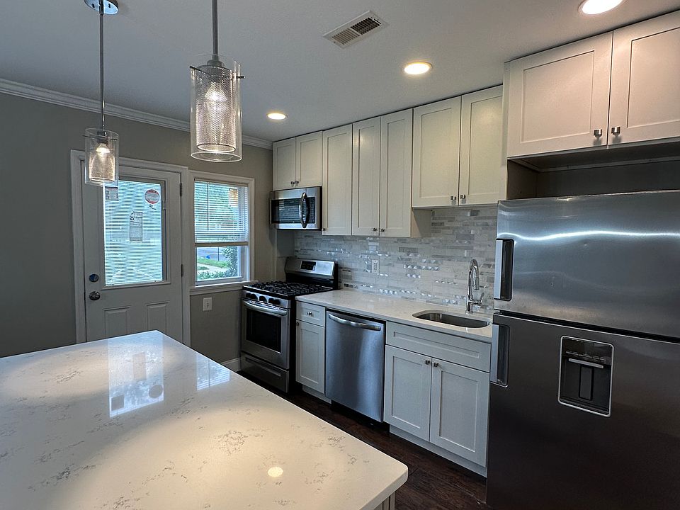 Renovated 3-bedroom, 2-bathroom brick townhome in Edmondson Village offers a blend of Baltimore City's Timeless Charm with Modern Updates. Inside, you'll find freshly painted interiors, oversized kitchen cabinets, High End Quartz Countertops, Stainless Steel Appliances, crown molding, LED recessed lighting, newly installed hardwood floors & ceiling fans in all 3 spacious bedrooms that offer comfort and functionality. The full-height basement provides valuable bonus space or as a fourth bedroom with a huge closet! Complete with a washer, dryer, and rear access for added convenience. Perfect for anyone seeking comfort, space, and value in a well-located neighborhood on a quiet peaceful street but still close to shopping, schools, and major commuter routes. With this prime location in the heart of the city, you'll have easy access to all that Baltimore has to offer. Don't miss out on the opportunity to make this your new home! *Vouchers accepted * $50 application fee per adult *Background and Credit required for all occupants 18 years old and older *Security deposits are contingent upon the applicant's creditworthiness. Please complete the application on Bright MLS RentSpree.