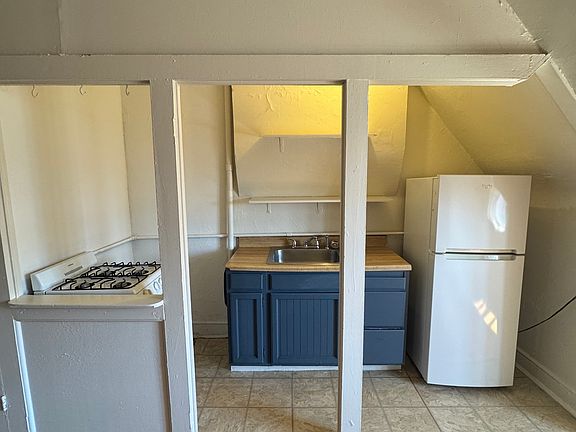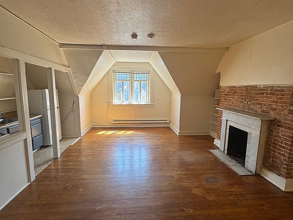 top floor studio apartment with hardwood floors, charming fireplace and exposed brick!