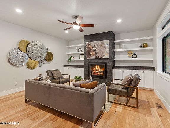 COMPLETED NEW CONSTRUCTION! It's time to take a serious look at this fully finished Downtown supersized stunner! One-of-a-kind, extra large new construction in Downtown Coeur d'Alene on beautiful tree-lined Government Way. 4,352 sq ft , 6 bedrooms, 4.5 bath with main floor Master Suite, upstairs en suite and gourmet kitchen with high-end appliance package including built-in wine fridge. Quartz countertops and beautiful custom bathroom tile work throughout. Hickory hardwood floors adorn the main living areas and steel-railed staircase. Dual-access garage off alley and street. Low-maintenance, front-landscaped yard and sprinkler system along with urban turfed rear drive. Triple zone heating/cooling. Surrounded by grand trees and quiet neighbors across the wide landmark street. Peaceful open views of surroundings from the spacious covered front up & down patios. Hurry before this is gone forever!