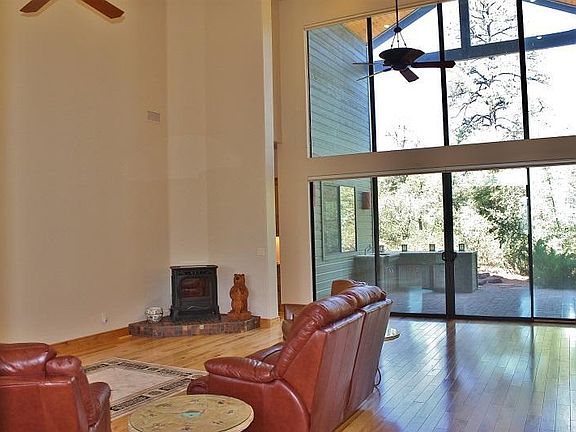 Be the New Kid on the Block! In this move in ready three bedroom, three bath home with over 2500 sq. ft. Located in the Chaparral Pines Gated Subdivision at the end of a large cul-de-sac. This home features lots of parking, an over-sized 2 car garage, plus a 1092 sq. ft. (20 x 50) RV garage perfect for anyone with lots of toys! The home has a spacious great room with large window with views of the forest. The kitchen has 2 islands, granite counters, breakfast bar and stainless steel appliances. Other features include split floor plan with 2 master bedrooms, large laundry room, all one level with no steps, hickory wood floors throughout, energy efficient systems, central vac and alarm system. Outside there are two large private patio areas and outdoor kitchen.