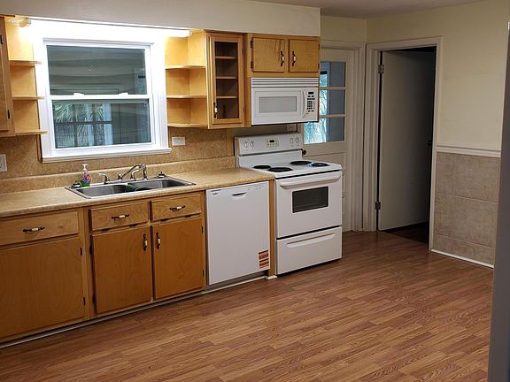 Inside, you'll find hardwood flooring throughout, a cozy wood-burning fireplace, and a dining room with a lovely bay window. The kitchen offers plenty of cabinet and counter space and comes equipped with a new dishwasher & microwave.
