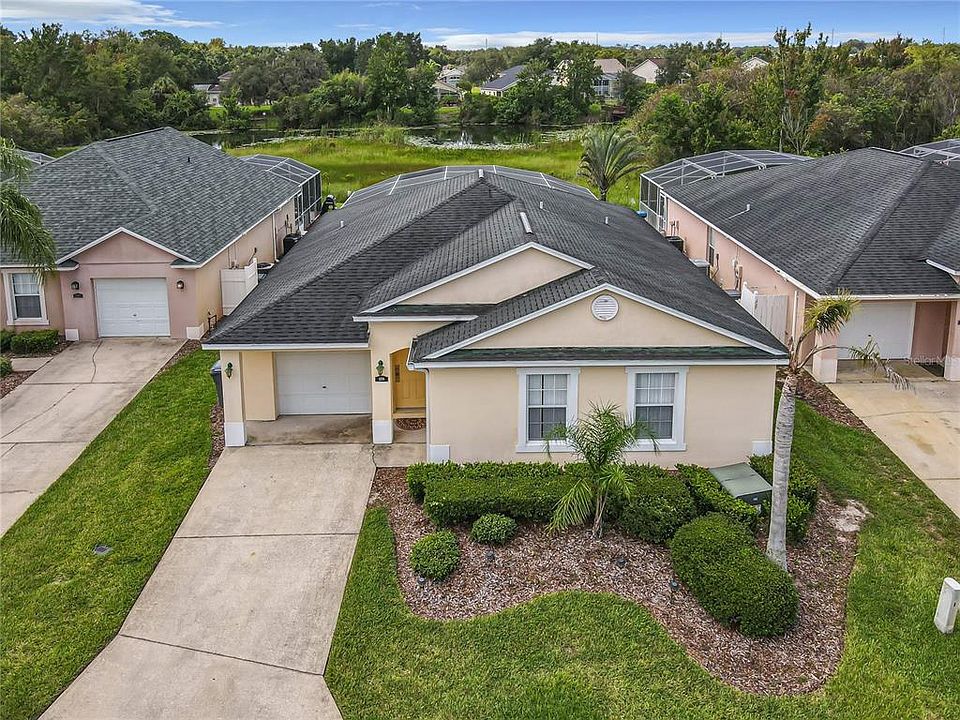No Rear neighbors and water view move-in ready 3 bedroom and 3 bath home in a quiet gated community. This lovely home is being sold fully furnished as a turnkey property. Perfect for short term rentals, long term rental or primary residence. Its location offers excellent access to restaurants, retail stores and major theme park attractions. The home has been well cared for and maintained over the years. New Leather Reclining Sofa sets with a rocking chair in living room, and bedroom set in the master. Wonderful vaulted ceilings give this home ample natural light. Situated on a large lot, the home and south-facing pool overlook a natural water conservation area. Don't miss your chance to enjoy this walk-in ready home. Access your 3D Tour:https://nodalview.com/s/0WSDK4yCzEO9GQju2XSpkY