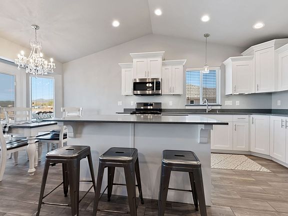 Stunning country home full of upgrades! This home features vaulted ceilings in the living spaces and Master Suite.The Kitchen has under-lit cabinets,quartz countertops,wood tile,fireplace.The master suite is fully insulated, features a large bay window, dual head shower, walk-in closet and a laundry chute. Lots of storage throughout the house, frenchdrain surrounding the foundation, Wifi sprinklers, in-ground trampoline, RV pad, custom fit Christmas lights with a flip of a switch and much more!