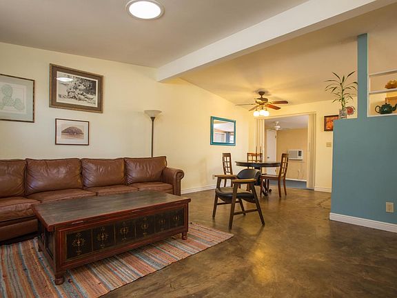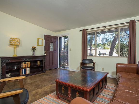 Hard to find, well-maintained 4 bedrm, 2 bth, many multiple use rms (See Floorpan) & separate finished shed, w/large 2 car carport & newer 6ft wood fence surrounding-great for pets. AC & gas heat. Many recent upgrades: stained concrete flrs, newer carpets, energy saving Low-E dual pane windows throughout & recently recoated white roof w/transferable warranty. 2 new bths w/lots of storage + new kitchen w/stainless pullouts in all bottom cabinets, double oven & new side by side fridge w/bottom freezer-great for cooks. All new plumbing, electrical-with GFCI outlets & new gas line & a new large energy efficient water heater. Laundry rm is set up for grey watering. Low maintenance, xeriscape front yard. Large backyard w/ mature desert trees & blooming fruit trees. A great eastside oasis