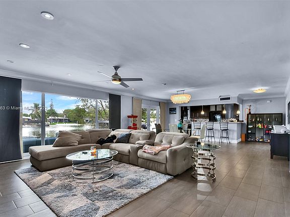 Welcome to this amazing waterfront home! Tastefully & entirely remodeled and situated on an oversized corner lot surrounded by water, with amazing views and over 10,000sqft lot. Open concept and spacious split floor plan. Beautiful porcelain floor throughout, new kitchen with dark wood cabinetry, built in oven and cooktop stove, wine cooler and beautiful granite counter tops. Newer bathrooms with glass shower doors. Large laundry and pantry area. Smart technology features such as NEST A/C system & Digital door lock. Newer roof and electrical panel. Carport for 2 cars, plus plenty of space on long driveway. Conveniently located steps from supermarket, easy access to I95 & less than 3 miles to the beach. Perfect investment option for Airbnb/Short Term rental property.