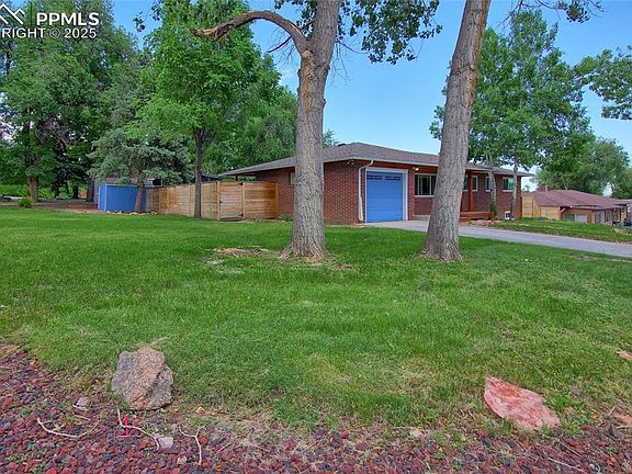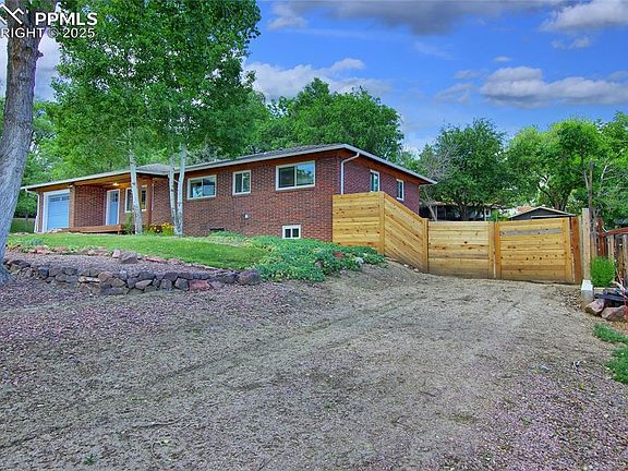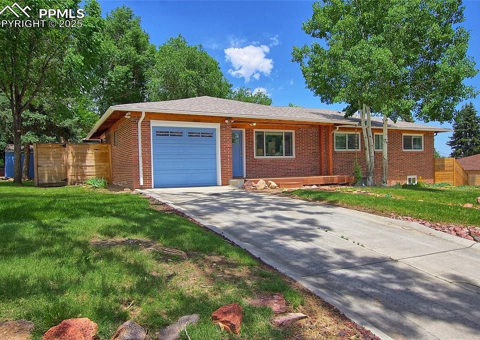 Discover timeless charm & modern comfort in this beautifully updated brick rancher nestled in Skyway*Established & scenic neighborhood*Open space*Blocks from The Little Dipper Swimming Pool & Skyway Elementary School. Short walk to CM Junior High & High School*Nestled on the west side, minutes to hiking & biking, parks, Cheyenne Canon, Ivywild, I-25 & downtown*Spacious 4 bedroom, 3 bathroom home sits on a generous .28-acre corner lot*Fully fenced rear xeriscaped yard, storage shed, RV gate w/ample room for a camper, carport or additional garage, brick paver patio*Covered front porch*Hardwood floors throughout & freshly painted interior*Open concept*Spacious living room illuminated by a large picture window & ample space for a large sectional*Thoughtfully updated kitchen features granite counters, subway tile backsplash, SS appliances & gas range oven, counter bar, space for a bistro table & walkout*Separate dining space w/walkout to covered concrete patio & backyard*Main level primary bedroom w/private 3/4 bath*Two additional main bedrooms share an updated full bath w/a new vanity*Downstairs, newly renovated basement adds versatile living space w/a rec room, guest bedrm w/an attached bath, under stairs storage, & laundry rm*Attached garage *Improvements include: A/C, radon mitigation roof, sheathing & gutters, rear landscaping, paver patio, fencing, retaining wall, removed wall between kitchen & family room, kitchen remodel: hardwood floors, appliances, countertops, backsplash & painted cabinets, added 3/4 bath in primary bedroom, interior paint, baseboards, front door, beams, surround sound, commercial grade service door off kitchen, custom window blinds, garage: higher door entrance (84"), insulated garage door, epoxy floor & electric, service door & frame, basement remodel: new flooring, paint, baseboards, fixtures, bathroom w/new vanity & built-in shower, barn door, re-ran furnace flue for equal distribution*Low maintenance home w/vinyl windows & brick exterior