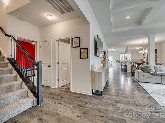 Fabulous recently built craftsman style home w/great curb appeal, covered front porch, & builder warranties. This home features an open floor plan, & plenty of natural light. It is appointed w/9' ceilings on the main & 8' up, upgraded laminate wood flooring throughout the main living areas, welcoming foyer w/wainscotting, open rail balustrades, windows enhanced w/casings & sills, & great room w/coffered ceiling. The dream kitchen features abundant white cabinets, quartz counter tops, ceramic tile back splash, stainless steel appliances, large island w/pendant lighting & seating, under cabinets lighting, pot drawers, & pull out trash. This split bedroom home features a large primary suite enhanced w/a tray ceiling. All bedrooms feature ceiling fans w/lights.The upper level w/full bathroom offers countless possibilities- bedroom, bonus, media, office... Relax & enjoy the outdoors on your patio. Lot backs to woods. This home qualifies for a special community lending program. Welcome Home!
