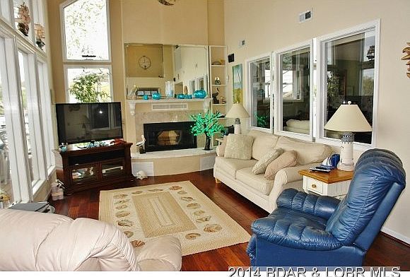 Sitting at the mouth of a wide, no-wake cove this 4 BR/3 BA home has many unique perks for either full-time or casual lake living. Rich hardwood flooring in living room,wood burning fireplace & soaring ceilings. Windows frame the wide lakeview, & expansive deck updated w/limited maint. composite. How about these NEWER UPDATES: Geo-Thermal Furnace, Roof/Skylights, Siding w/transferable warranty, Ecobee Programmable Thermostat, & your peace-of-mind from a 4-camera security system you can monitor via phone/computer while away. Three BR & full BA on upper level; master suite on lower! Nice kitchen layout, w/tile flooring & quartz counters. A home for relaxing & enjoying The Lake! Furniture & Ozark Barge Dock Available for add'l. $$