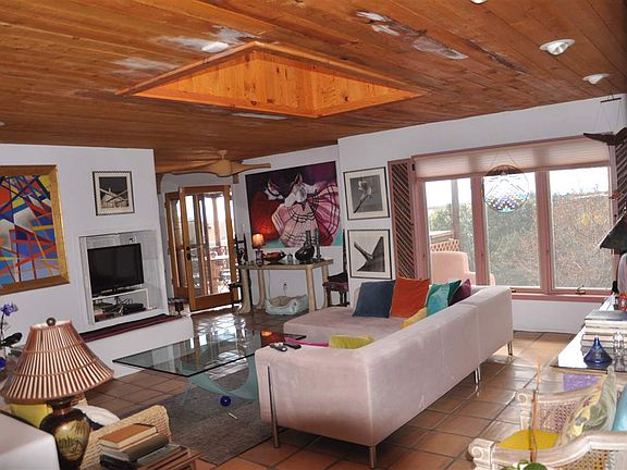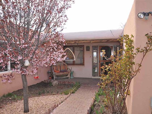Comfortable, quiet home on 1.3 acres in residential neighborhood minutes from the Plaza. Very nice sunset views. 2 Bedrooms/ 3 Baths. Garage has been converted to studio space. 3rd Bath was added next to studio with vibrant color and steam shower. Carport is convenient next to studio. Nice deck for sunset viewing or al fresco dining. Spacious kitchen, 2 Fireplaces, Lovely Entry Courtyard.