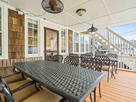 There is a contingent contract on this home. Property may be shown per showing instructions.This Main Line-looking traditional home in Historic Cape May has it all! Enjoy the covered front porch and and feel the light breeze while relaxing or while having fun with family and friends! As you enter through the front door, step onto the beautiful hard wood floors and into the spacious and cozy living room with a gorgeous custom-designed wood on the face of the fireplace. Continue through your new beach house into the chef-like kitchen with stainless steel appliances. Spend time in the two rooms for dining or step out onto the covered rear deck with plenty of space to gather for your family. If you have a pet, perfect, because here you have a fenced in yard and if you like to grill, perfect, there is a grill set up in the side courtyard area! Interested in a bike ride, perfect, there are 24 to choose from in the full-sized basement. This house has everything you need to have fun at the shore!! There are 4 bedrooms, 3 bathrooms, a washer and dryer, two kitchens, two dining areas and more on the first floor. The second floor includes 5 bedrooms, 3 bathrooms, and both an indoor sitting area as well as a rear deck area to gaze at the ocean views! Choose this turn key beach house being conveyed fully furnished! Beautiful ocean views and just steps from Cape May's pristine beaches to watch the sunrise or sunset, walk around the corner and enjoy Harry's for rooftop dining, the Washington Street Mall, and a variety of some of the best restaurants the Jersey Shore has to offer! 9 bedrooms, 6 bathrooms, sleeps 22, 5 king, 2 queen, 2 twin, 1 bunk, 2 sofa beds, 3 kitchens, 24 bikes, 20 beach chairs and beach carts. Imagine your whole family enjoying this retreat house! Excellent Rental History!! See Associated Docs.
