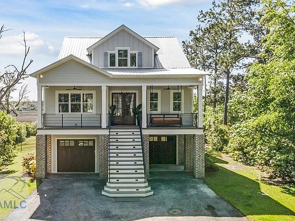 **WELCOMING ALL SHOWINGS! BUYER'S CURRENT HOME SALE CONTINGENCY ENDING SOON** Masterfully expanded & remodeled 5 BDRM/3.5 BATH, 3,512 SF custom Marshfront Estate offers deep water views & over 2.7 acres. *HIGHLIGHTS INCLUDE -- PRIVATE GATED ENTRY, EXPANSIVE GYM/REC RM, FRAMED ELEVATOR SHAFT, 3 PLUS ENCLOSED GARAGES, POLE BARN, RV/BOAT STORAGE, 2 SEPARATE HOME OFFICES, DOUBLE BACK DECKS & MORE. The home features a reimagined front elevation w/full-width Trex decking, black aluminum railing & custom stair lighting. Interior upgrades- enlarged foyer, second office/flex space, and all-new rear double decks capturing stunning west-facing sunset views, channel drains, whole house painted exterior/interior. New carpet in upstairs bdrm. The 5BR/3.5BA layout includes all LVP flooring, tiled bathrooms on main floor, main-level primary suite opens on to back deck, 2 walk-in closets, separate dining rm w/Library built-ins, addt'l upstairs ensuite. Only two bedrooms are carpeted. Features a future elevator shaft. Irrigated grounds, pole barn w/ 50-amp hookups and insulated workshop. Water softener, brick fire pit, and expansive backyard overlooking Tivoli River. No HOA! Just minutes to I-95. Sellers licensed GA Realtors.