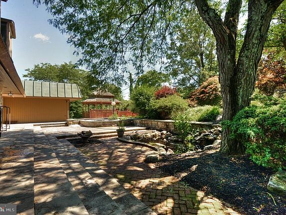 Nestled within an idyllic 1.24 acre private corner lot on a cul-de-sac street is found this custom-built Al Kutz stone contemporary with lush plantings, gazebo, ponds (one being koi), and waterfall. Throughout the three levels can be found six expansive bedrooms and five and a half baths. Elegant finishes such as the copper roof and gutters, ornate brass railings, moldings, and adorned lighting and fixtures throughout. Cabinetry in the kitchen is plentiful along with double ovens, Corian counters, island with exhaust and ceramic cook-top, Kitchenaid commercial refrigerator, and Butler's pantry along with laundry area with access to back. The stone floor to ceiling fire place with wood-burning insert is the focal point of the family room along with built-in shelving and skylight. The Master Suite is conveniently located on the main floor and has a wheelchair accessible bath. Sliding door to deck and gazebo from Master has motorized blackout blinds. The basement has at-grade entry with a two-car oversized garage, entertainment space with bar and built-ins, laminate flooring, mirrored gym room, full bath, along with another bath and walk-in closet in the sixth bedroom. The several sets of sliding doors in the raised formal dining room, kitchen, and off of the family room allow the main level to be saturated with natural light. This home has timeless character, and is immediately ready for it's next owner.