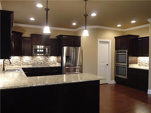 Large kitchen with cascading cabinets and stainless appliances, double ovens, granite, 3 car side entry garage, full brick and covered patio! Hardwood floors and tile baths all in a fantastic neighborhood, and more! READY IN NOVEMBER