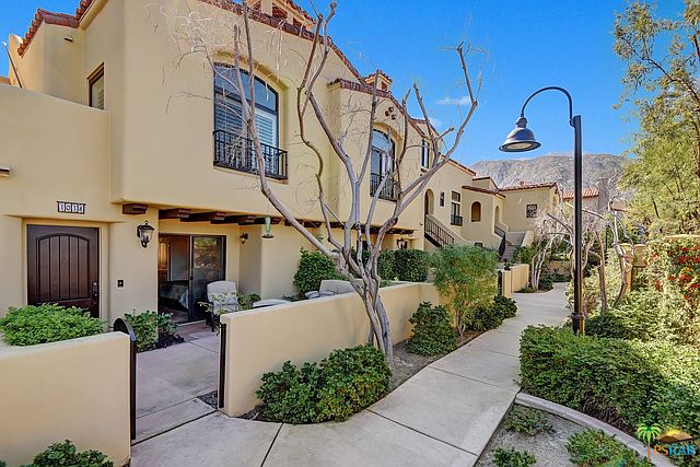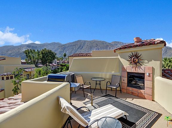 Through these gates in the heart of Palm Springs awaits the contemporary mediterranean enclave of Villorrio. This two bedroom model features first floor guest room and private patio, second floor master and living areas, and Rooftop Deck with outdoor fireplace and panoramic vistas of the San Jacinto Mountains and beyond- the perfect spot to enjoy morning coffee and evening cocktails with a view. The open kitchen with solid granite countertops, gas range, stainless appliances and updated wood style flooring creates a nice flow and sense of volume with lots of natural light. A nice separation of space from the guest bedroom and master is ideal for hosting guests. The two car garage and laundry room complete the home feel, with the benefits and security of a gated community. Blocks from downtown and on Fee Simple land (no lease), this townhouse is a truly special place to call home or home away from home.