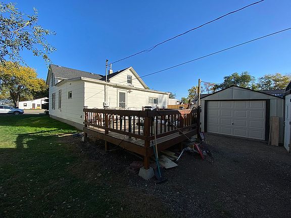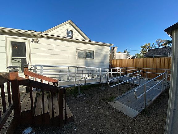 Three bedroom, one bath home with two main floor bedrooms, main floor laundry and bath. The bathroom features a handicap walk-in shower. The kitchen has updated cabinetry and all kitchen appliances stay with the home. The third bedroom is in the finished attic space. There is a handicap ramp to access the back deck and into the home. Alley access to the detached carport that has been made into a garage, plus a 12 X 17 storage shed.