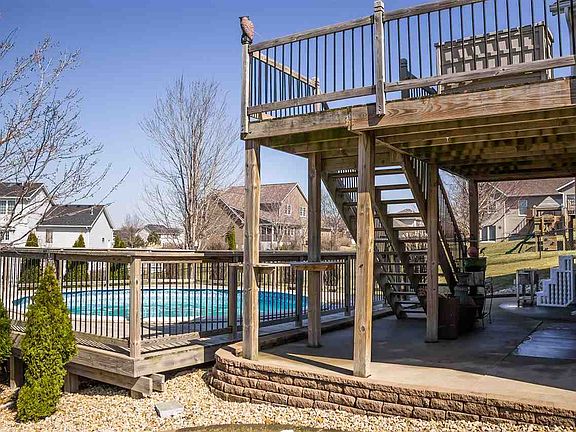 Great family home in family friendly neighborhood close to North Scott School. 3 Side fireplace between spacious kitchen & family room. Great views out your backyard overlooking deck & pool area. Finished walk-out lower level leads to fenced rear yard. Well maintained with the following updates. 1 Year TMI Home Warranty, New insulated garage doors in 2016, New shingles 2016, Additional driveway 2015, New carpet 2015, Custom built bar 2012, Professional landscape & hardscape - Front yard and back yard, Garage heat 2014. Room to add 3rd garage bay.