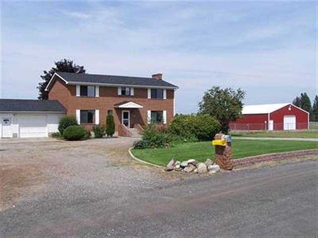 Hard to find 2 story brick traditional home on 4.9 acres just minutes from downtown. 4 bedrooms (on 2nd floor), 3 baths, full unfinished basement w/masonry fireplace. Sports court, lovely deck w/retractable awning, formal dining - family room & spacious living room w/wood fireplace. Forced air & air conditioning - original 2c garage - 40x60 shop built in 2007. Yard is fenced w/some fruit trees. Cheney school & activity bus stop at corner. Seller fell in love with it-now it is your turn.