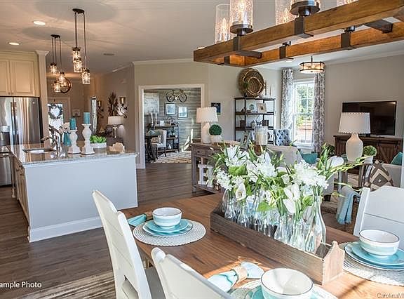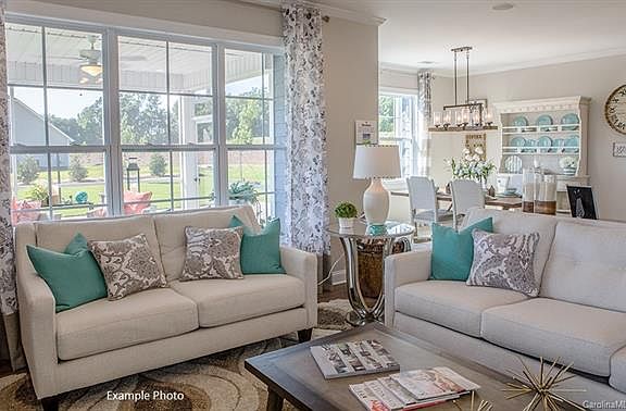 This enchanting plan offers a rocking chair front porch with stone accents. The interior provides gracious style and flexible space w/ a large center island in the kitchen that opens to the heart of the main living area. The spacious main level owner's suite offers a tray ceiling, 5' tile surround shower with seat, and large walk-in closet. Second floor boasts a bedroom, full bath and large bonus room and storage space.