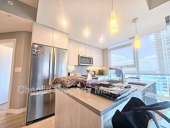 Beautiful Two-Bedroom, 2-Bathroom Condo for Rent, Encore Tower Immaculately kept, quiet building within walking distance to LRT, Roger Place, City Centre and all other downtown places Conveniently located near bus stations, and major grocery stores, easy access to public transportation and main roads ensures a hassle-free commute to any part of the city Spacious unit spanning near 800 square feet. All appliances included: dishwasher, stove, fridge. Ideal for students, working professionals, or families. Luxury and High-end Design and finishing Property Features: Bedrooms: 2 Bathrooms: 2 Beautiful balcony Prime location in the center of Downtown! Walking Distance to bus stations, and major grocery stores, Gym and many restaurants! Well-maintained and peaceful building. Private washer and dryer in the unit. Stylish hard wood and carpet flooring the condo. One heated-underground parking spot included. Requirements: -Looking for 12 month lease -Heat and water are included. The tenant needs to pay for electricity and internet. -Smoking outside the building only -Require landlord and employment reference -Fast process of application -No Pet Don't miss the opportunity to rent this beautiful condo! Contact us now to schedule a viewing or for more information.