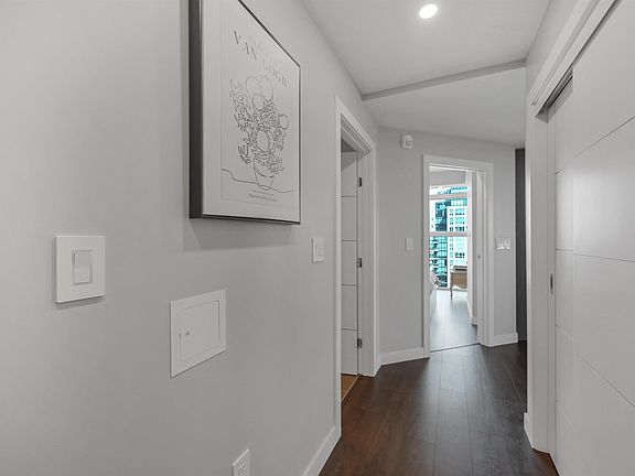Welcome to Encore Tower, nestled in the heart of downtown Edmonton! This beautiful two-bedroom, two-bathroom unit is move-in ready and boasts stunning views. Floor-to-ceiling windows offer breathtaking, unobstructed views of Rogers Place & Stantec Tower. The modern kitchen features stainless steel appliances & an island, perfect for entertaining & everyday living. Enjoy a spacious living area with modern finishes, central A/C, & window coverings throughout. Located just steps from the ICE District, top restaurants, cafes, & Rogers Place, you’ll be at the centre of everything. The unit includes a heated underground parking stall & access to luxury amenities such as a 4th-floor rooftop, a full fitness centre, stylish social rooms, & concierge service for added convenience and security. A must see!