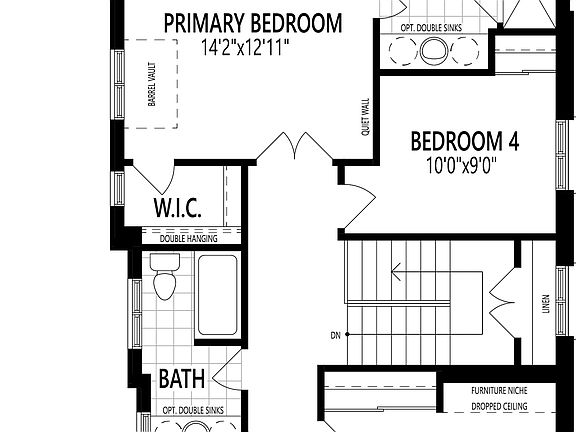 The Maitland Corner welcomes you home through a charming portico leading into a prominent foyer. A spacious combined mudroom and laundry room opens off the foyer and provides additional access to the garage. The distinctive, open-concept main living space features a great room with gas fireplace, breakfast nook with patio doors and stylish kitchen with breakfast bar. An alternate chefs kitchen layout with pantry is available for this floorplan. Upstairs, escape to the privacy of your separate primary bedroom, with a walk-in closet and ensuite, with an optional bath oasis for an at-home spa experience. At the opposite end are the main bath and bedrooms 2 and 3. The Maitland Corner provides a variety of options for personalizing your home, including the option of adding a 4th bedroom to the second floor.