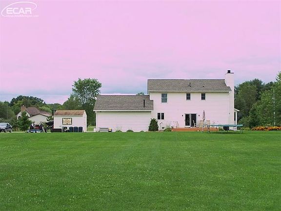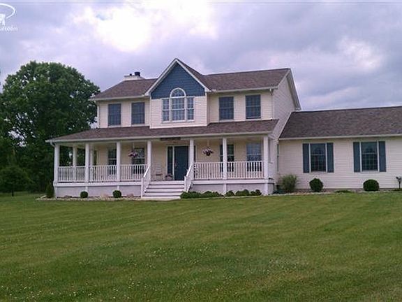 Beautiful one owner newer built 2 story with wrap around roofed front porch.Manicured 6.4 acre setting with private pond,large rear deck and a storage shed.Side load 3 car heated garage with door opener,hot and cold water and a separate furnace.Kitchen with hardwood floor and appliances opens to fire lit family room and door to rear deck. Formal living room and a formal dining room with hardwood floor.Second floor master bedroom suite with walk in closet and private bath with ceramic tiled floor.Three additional bedrooms and another full bath are also located on the second floor.Basement is full and unfinished, ready for your personal touch.Forced air gas fired furnace with central air, air cleaner and humidifier.New water softener.