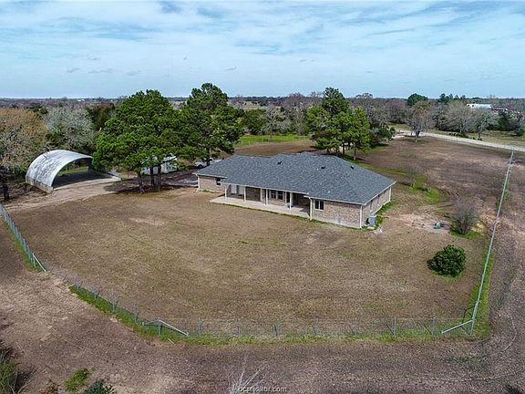 Nice 3-bedroom 2.5-bathroom home situated on 2.164-acre tract less than 5 miles from Texas A&M near the end of a paved county road. The home is located on a hilltop overlooking the Brazos River bottom. Acreage has been tilled and Bermuda grass seeded. Home is in great shape and the 1,800 sq. ft. metal building is also in great condition with electrical service for a motor home. Great country living on a paved road and minutes to Kyle Field