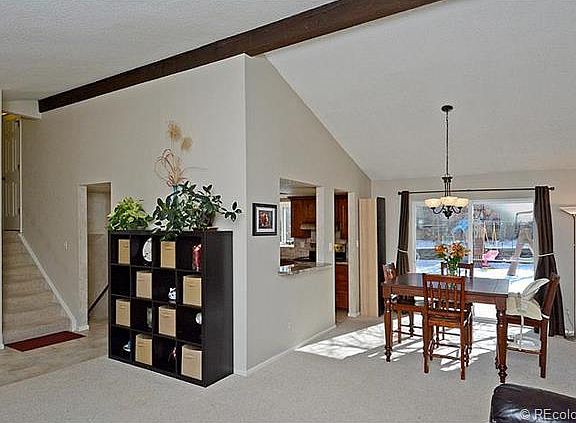 Beautifully updated home is light and bright with vaulted ceilings! Upgraded, spacious kitchen has granite countertops, stainless appliances, and tons of cabinet storage. Formal dining room has sliding glass door leading to upper patio, perfect for summer entertaining! Family room has wet bar, gas fireplace, lots of natural light, and opens to lower patio. Roomy master bedroom has large closet, ceiling fan and beautifully updated 3/4 master bath. Full guest bathroom has also been updated and has a skylight. Finished basement has room for an exercise area, play room etc. Yard has professional landscaping with stamped concrete patio, mature landscaping, and sprinkler system. Close to parks, mountains, dining, shopping, and great schools!
