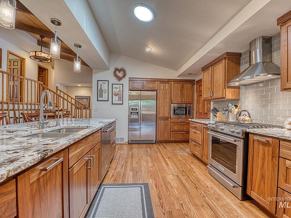 Why leave town when you can come home to this! Tucked away on a quiet street and surrounded by beautiful mature landscaping sits this fantastic West Boise home. The privacy this home offers is one of the many outstanding features along with the remodeled kitchen/dining area, the built in sauna, a fabulous game room and enough garage space for vehicles, a home gym or a shop. The separate living room at the far end of the house makes for a place of solitude to unwind from the bizziness of the day. Did I mention the community pool is just at the end of the street. Don't miss the hidden playroom for the kids and the dog run area behind the garage. Give yourself plenty of time to view this home and imagine how awesome it would be to live here!