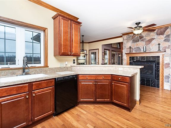 Brick ranch just listed on a quiet country road in Alexander School District. Beautiful features throughout. Lovely kitchen with appliances, breakfast bar and adjoining dining area. Dual sided stone gas fireplace. Spacious living room that leads to an unbelievable sunroom with stunning view. Two bedrooms. Primary bedroom features primary bathroom and massive walk-in closet as well as separate access to the sunroom. Hardwood floors throughout. Additional 1.5 baths. 1865 sq. ft. with cathedral ceilings and a basement with walkout that could be finished to add to your living space. Open front porch, rear deck off sunroom, wide blacktop driveway with turnaround, 2 bay attached garage and shed.