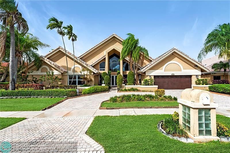 In beautiful Jacaranda Cay, this very large home is perfect for entertaining! Featuring 5 bedrooms and 5 1/2 bathrooms PLUS an office & a 610 sqft loft/bonus room! The open kitchen features granite counters, stainless steel appliances, high ceilings & stacked stone backsplash! Off the kitchen there is a wet bar with pass through window to the covered patio! Large family room opens to kitchen area & features a stacked stone fire place! New 24 x 24 inch porcelain tile throughout main living area & many of the windows are impact glass. 3 zoned ACs. Oversized master bedroom features 2 large walk-in closets and french doors to patio/pool. Built in BBQ w/ sink! Enjoy the view on the fully pavered patio that surrounds pool. Perfectly located! Minutes from major highways, shopping, and dining!