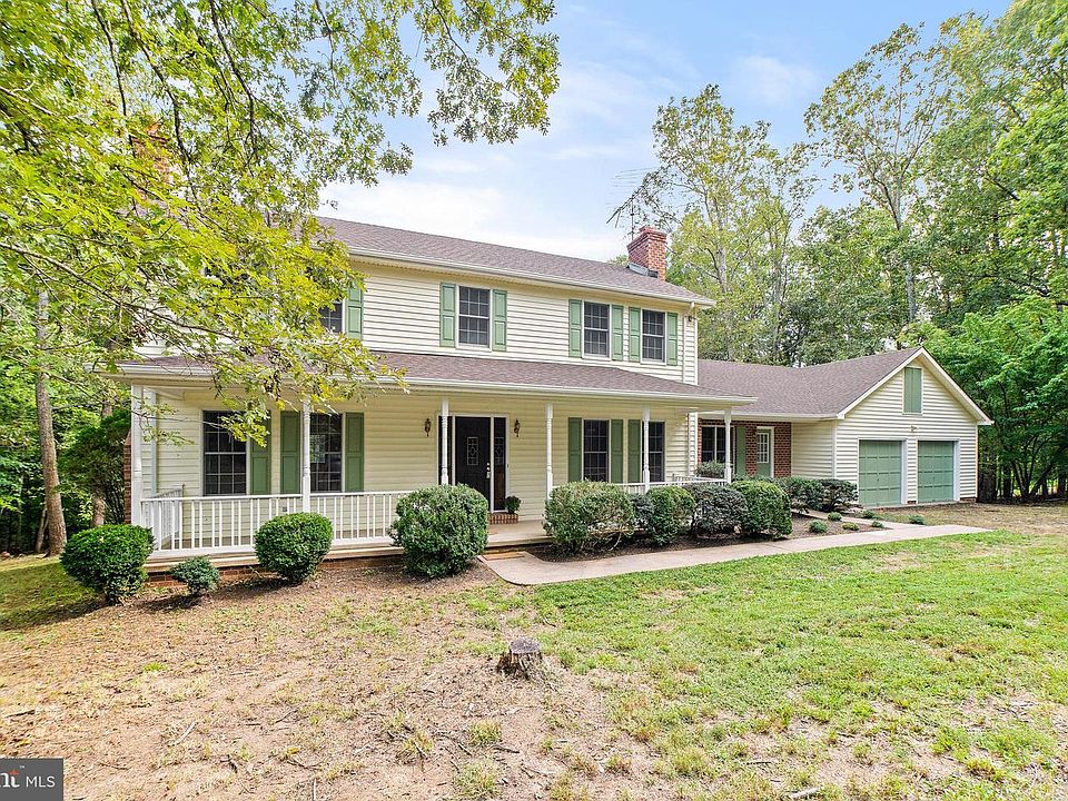 Custom Built Country Home Close To Town. Nearly 3000 Sq Ft on 5.66 acres . The Spacious rooms provide plenty of space to spread out! The Main level boasts a beautiful living room with a wood burning fireplace, sun filled dining room, kitchen with new appliances, counter tops, vinyl plank flooring, and adjoining family room with flue for a wood stove. Need a home office, in law suite, home school space, hobby room?? The "Flex Room" with private entrance and full en suite bathroom may be just what you're looking for. Upstairs is the Primary bedroom with full bath, walk in closet, and fireplace. The additional Three bedrooms share a large full bathroom. Check out the oversized garage that will accomodate your vehicles, out door equiptment, work area and there's additional storage above.