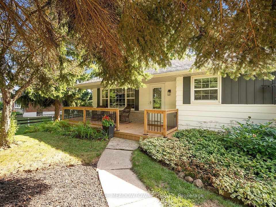 Urban Meets Rural - The Best of Both Worlds! Welcome to this charming and tastefully renovated 3-bedroom bungalow perfectly positioned on the edge of Georgetown South, where urban convenience meets country tranquility. Situated on a picturesque lot over one-third of an acre (103'x 140') and framed by a classic white picket fence, this home delivers the ideal blend of warmth, character, and space - a rare find so close to town. Step inside and experience the open-concept main floor, seamlessly connecting the living, dining, and kitchen areas in a bright, airy layout. Natural light foods every corner, highlighting the thoughtful renovations and inviting ambiance throughout. The sun filled primary retreat is a peaceful escape with a gas stove and backyard views that bring nature right to your bedside. Two additional bedrooms on the main level offer flexibility for guests, family, or a creative studio. Downstairs, the cozy finished basement adds extra living space with a fourth bedroom, recreation area, and ample storage - perfect for movie nights, a gym, or an in-law setup. Those working remotely will love the quiet and private 16' x 16' detached office with vaulted ceilings and separate entrance, providing the perfect setup for a home business or studio retreat. Step outside and unwind in your own private oasis. The expansive, tree-lined yard offers endless possibilities for gardening, play, or entertaining. The white picket fence frames the home beautifully while enhancing privacy and curb appeal. All this just minutes from Georgetown South's shops, restaurants, schools, and parks. A perfect harmony of charm, function, and freedom - where you can live, work, and relax in one exceptional space.
