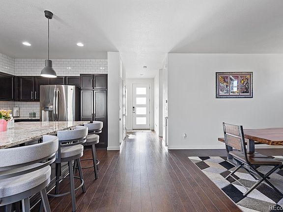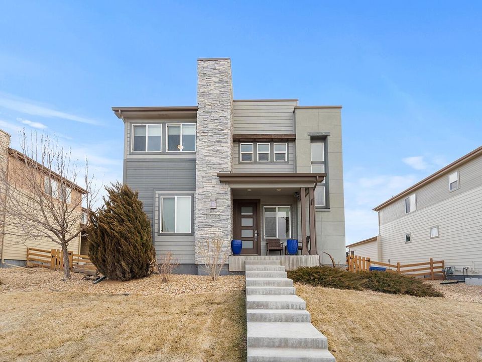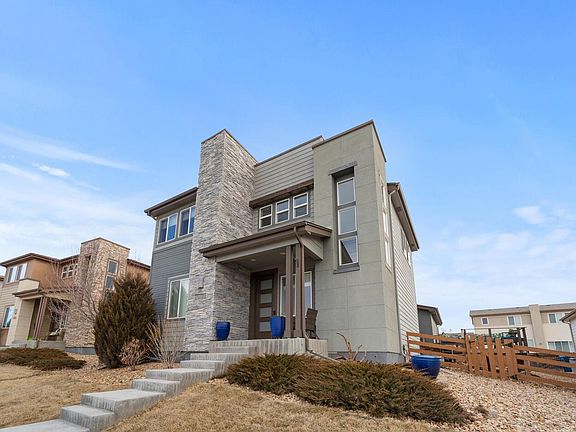 Welcome home to your beautiful property in the highly sought after Reunion Community! Built in 2015 right on the circle of Southlawn Park, step inside your newer home and be greeted by tall ceilings, gorgeous luxury laminate flooring and lots of natural light! The spacious first floor features an open concept, updated kitchen boasting: tasteful granite counter tops, stainless steel appliances, a large island and access to your fenced yard and patio, perfect for your fur babies and grilling all year round! There is 1 large bedroom/office on the main floor as well as a full bath, perfect for working from home or utilized as a private guest suite. The kitchen opens up to a very welcoming living and dining rooms, complete with gas fireplace. Head upstairs and spend quality time in your large loft space, perfect for a kid's playroom or an additional relaxing space. Upstairs also features two ample sized bedrooms, a large full bath and a massive primary suite/bath complete with custom closets! Laundry is conveniently located upstairs, no walking up and down stairs to do laundry. Converted in 2019, the basement doubles as an ADU/mother-in-law suite featuring 1 bed, 1 full bath, separate laundry, its own private entrance, a full living room & a gorgeous kitchen with a large quartz island & plenty of storage. The 3 car attached garage has plenty of space for two cars & all of your storage needs. This property sits in the most desirable location in the community, right across the street from Southlawn Park & newly constructed Pool. Perched on top of a hill, enjoy coffee on your front porch while taking in stunning views of the Rocky Mountains and Downtown Denver! The Reunion Community has 52-acres of parks, an award-winning rec center, eight acres of lakes, athletic fields, trails, picnic areas and many community events. With so much to offer at an affordable price in an incredible community, come see this Reunion gem today before its gone!!!