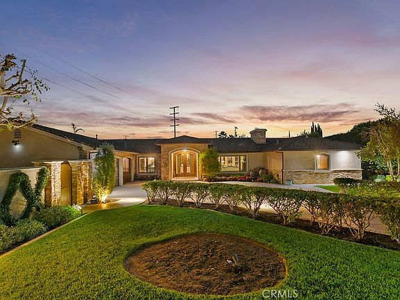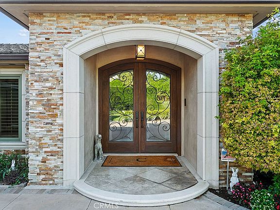 Welcome to this over-the-top custom single-story estate at in the heart of Villa Park on a highly desirable cul-de-sac. Immediately upon entering you feel as if you have been transported to an ultra lux resort. Gorgeous custom glass inlaid front doors open to large foyer with custom mosaic flooring, piano nook, fireplace and seating area for guests. Large chefs kitchen complete with top of the line appliances, 2 sinks, custom mosaic backsplash and huge stone island, perfect for the entertainer, additional overflow ovens in garage for the holiday season or catering staff. Large primary suite with fireplace, seating area looks out to the manicured grounds. This primary bathroom leaves nothing to be desired, gorgeous custom cabinets with 2 sinks and vanity with oversized shower and gorgeous walk in closet with custom built-ins. Large home office with custom cabinetry opens onto secret garden complete with fountain. Full bar with seating for 6 and table to relax and play cards. Luxuriate in this grand living room with drop down projector screen and surround sound for the full theater experience. True indoor-outdoor living has been achieved with 30 foot sliding doors that retract fully into the wall, travertine flooring continues from the interior to the exterior pool deck making the transition seamless. Additional wet bar and bbq area outside looks out on the solar heated pool complete with slide and waterfall feature. Large grassy area for the kids to play. In-law quarters/guest quarters are accessed through separate private entrance with full bathroom suite. Set the scene with custom cove lighting and state of the art Audio Visual, all controlled from the palm of your hand via the Crestron system. Commercial grade HVAC system with 4 zones, airflow is delivered through custom diffusers/registers throughout. All interior doors are custom alder wood. The finish work in this house is truly masterful, you must see this property to believe!