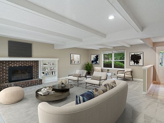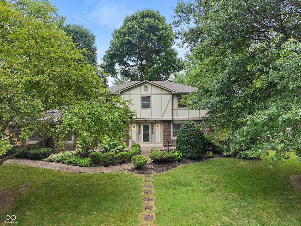 Incredible opportunity to live in Briar Creek, one of highly rated Carmel's most popular neighborhoods! This Tudor style 4 bedroom, 2.5 bath home with a finished basement sits on a large, beautiful wooded lot. Recently updated with new paint, new carpet, and a new roof, you will love the space and tranquility in and out of the home. Enter into a spacious foyer. You will love relaxing in front of brick fireplace with built in bookcases in the large living room. The kitchen is sunny and light-filled with bright white cabinets. A spacious dining room provides space for entertaining. Large sunporch is perfect for enjoying the peaceful, tree-filled backyard. The sunporch opens onto a spacious deck for outdoor entertaining. Four bedrooms upstairs, all with generous closet space. The basement family room is big and includes a good sized unfinished storage or workshop area. The neighborhood has a community pool, swim team and pickleball and tennis courts! Briar Creek is a quiet oasis located in the heart of everything - near restaurants, the Monon trail, close to 465, Castleton, Carmel High School, and all that Carmel has to offer, you will not want to miss this house!